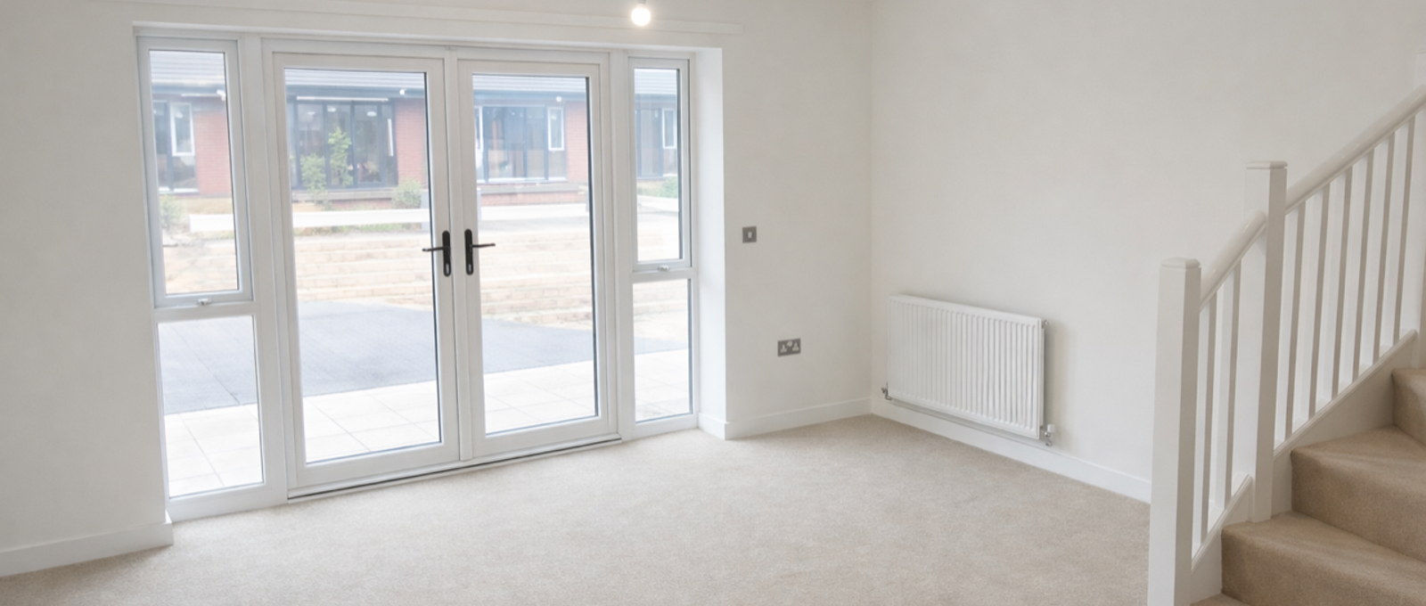 - Spacious living room with patio doors leading to the garden